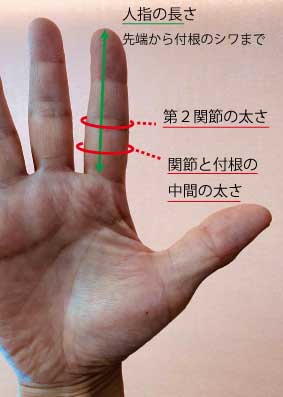 人指し指先端から親指の付け根まで(股の一番深い所)